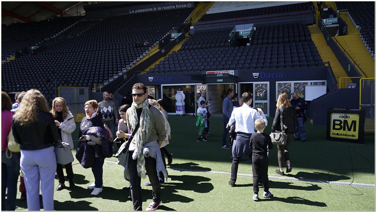 È un sabato mattina, giornata in cui si può partecipare alla Stadium Experience (previa prenotazione). Si tratta di una visita guidata al modernissimo impianto sportivo che ospita la squadra dell’Udinese Calcio. Il tour dura circa un’ora e non ci si annoia affatto, anche per quelli che come me non sono appassionati di questo sport.