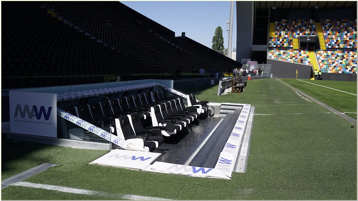 E questo è un vero campo da calcio, perché mi trovo alla Dacia Arena, lo stadio di Udine.
