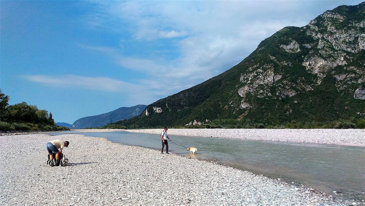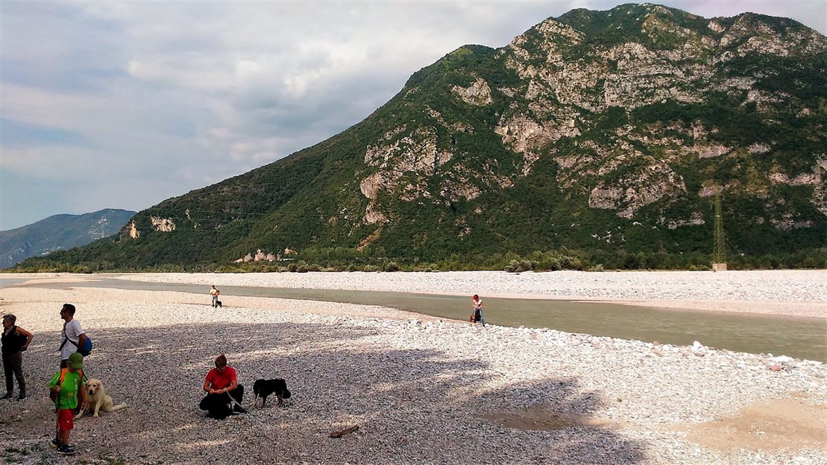 Siamo arrivati in auto a Ospedaletto di Gemona del Friuli e in fila indiana ci siamo avviati verso il fiume, attraversando la S.S. 13 Pontebbana e… in un attimo abbiamo raggiunto una larga spiaggia dove noi cani ci siamo tuffati nelle fresche acque del Tagliamento, il “Re dei fiumi alpini”, il più importante del Friuli Venezia Giulia, che attraversa tutta la regione per 178 km!