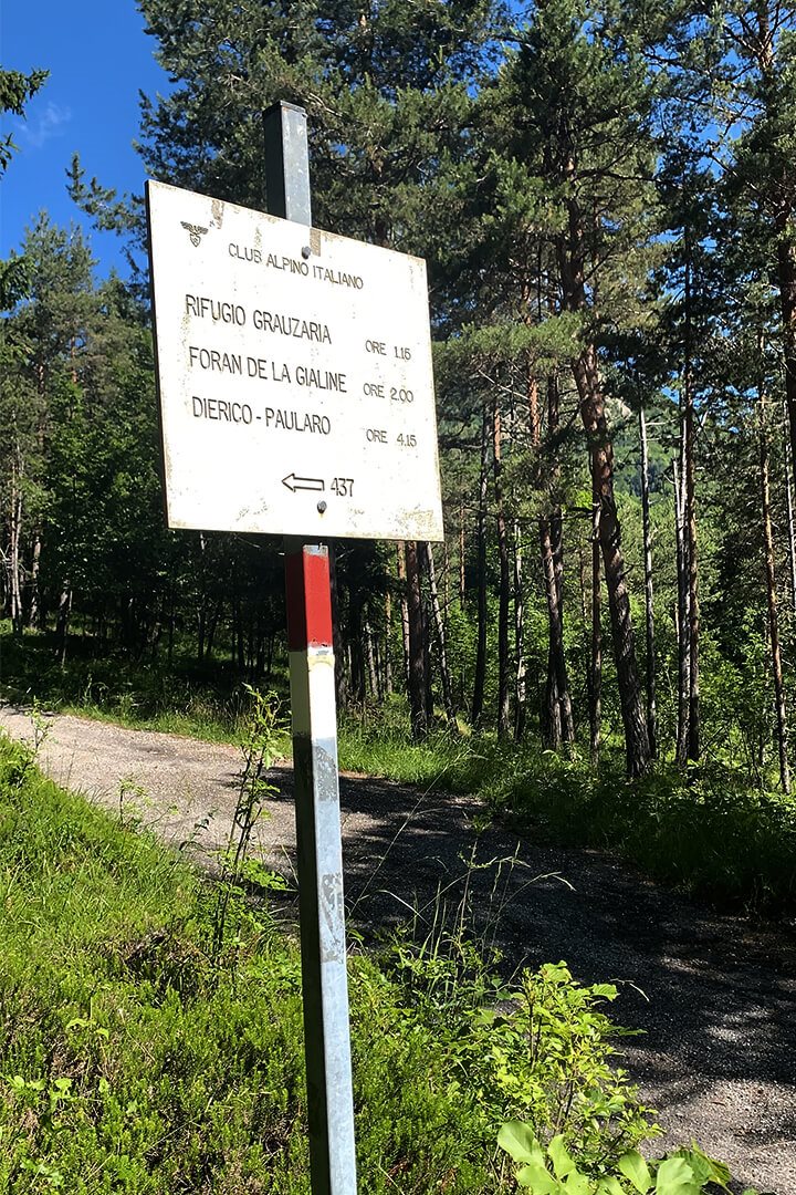 Il Rifugio Grauzaria è situato su uno sperone di roccia, circondato dai Monti Sernio, Grauzaria e Gjal. Per raggiungerlo c’è solo il sentiero.