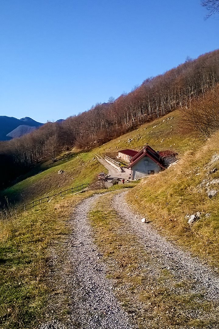 Attraversiamo la strada e dopo circa 150 metri notiamo il primo dei segnavia Cai (sentiero n.806). Il sentiero sale lentamente sul fianco della montagna innalzandosi gradualmente. In una ventina di minuti ci porta nei pressi della malga Mongranda.