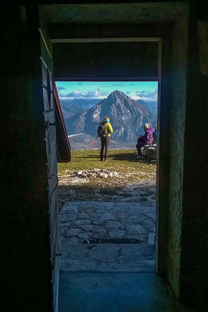 Dopo circa un’ora e venti minuti e 400 metri di dislivello, sbuchiamo su un piazzale panoramico dove finalmente troviamo la nostra Casera Presoldon, situata a 1300 metri. Qui ci fermiamo per consumare il nostro pranzo a sacco seduti sull’erba ad ammirare un panorama entusiasmante. Terminato il pranzo, visitiamo l’interno della Casera dove troviamo un caminetto, un grande tavolo con due panche per sedersi, una cucina provvista di tutti gli accessori ed al piano superiore una camera con due reti per dormire.