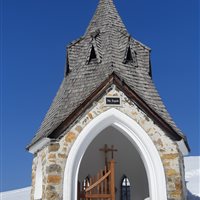 Il percorso si snoda nel silenzio del sottobosco ovattato dalla neve unico rumore lo scricchiolare dei miei passi sulla neve ghiacciata, e talmente tanta che gli alberi sembrano spezzarsi sotto il suo peso. Raggiunto Malga Rauna ecco alle sue spalle la Cappella Zita costruita dai soldati austriaci nel 1917 dedicata alla loro imperatrice Zita di Borbone. Il panorama è favoloso sulla valle sottostante. Alle mie spalle lo Jof di Miezegnot (2087) che si potrebbe raggiungere seguendo il sentiero, ma per questa volta mi fermo qui ad ammirare questa piccola cappella gotica da poco ristrutturata e la bellissima natura che la circonda. Sosta doverosa, una volta sceso a valle, presso I Dolci di Irma, dove mi avvolge il profumo di torte e biscotti sfornati al momento, prima di ritornare in auto verso casa.