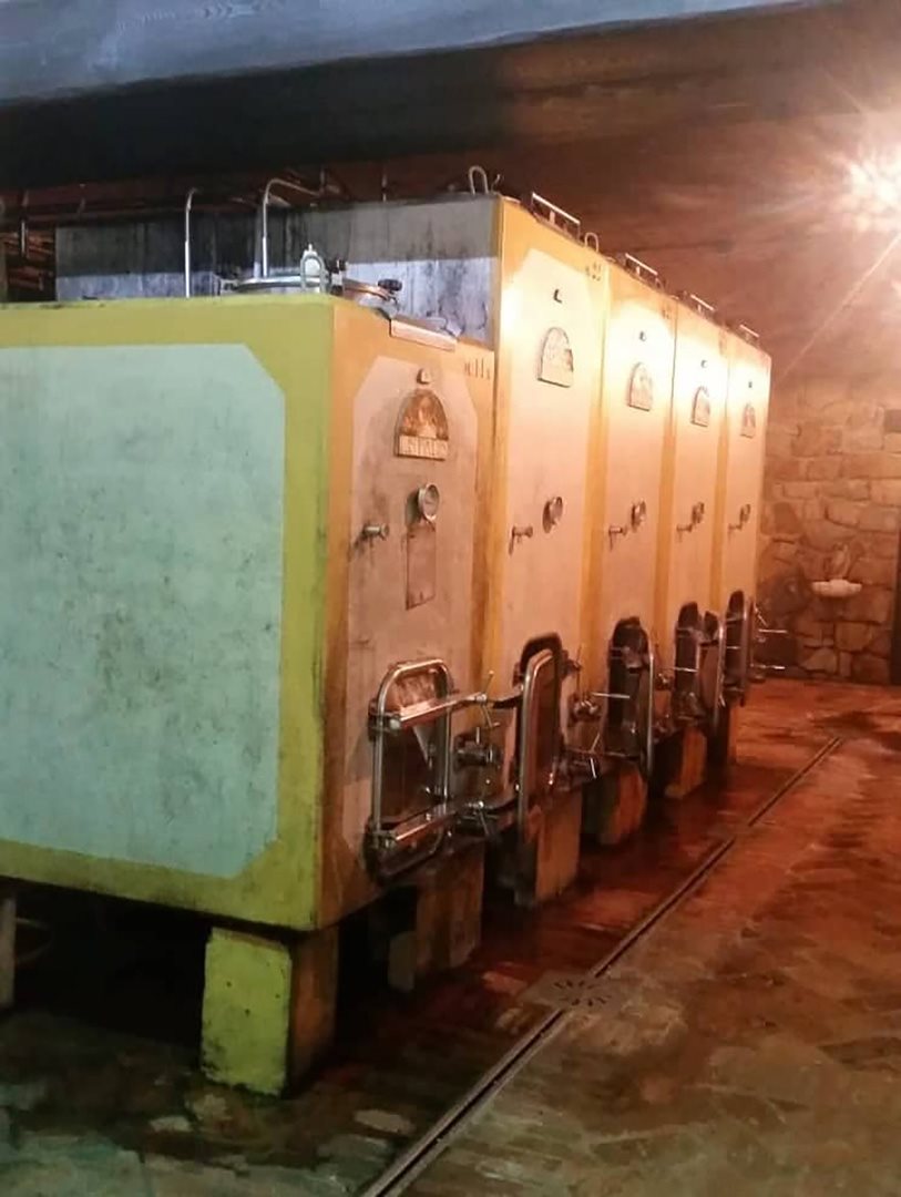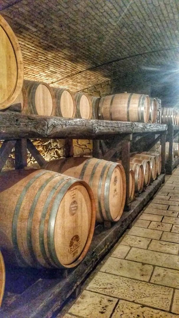 Entrando nella prima stanza, le vasche di cemento e poi la cantina del riposo, con le botti in rovere, cullano il vino, perché possa maturare e regalare quell’attimo magico di felicità che solo un vino di qualità ci può dare. Temperatura e umidità sono controllate (e io penso al golfino lasciato sulla Mitzy con molta nostalgia).