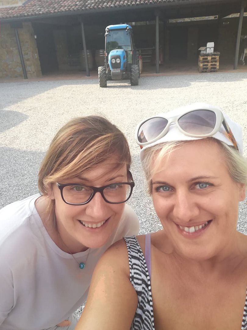 Si avvicina una bella signora, Monica, sorridente e accogliente che ci chiede se abbiamo un po’ di tempo per fare il giro della cantina per poi degustare i vini, perché il vino se ne conosci la storia lo riesci ad apprezzare meglio. Si scusa con noi perché Vanilla e Alessandro, i proprietari non sono presenti, perché hanno preso un momento di riposo per potersi dedicare meglio alla vendemmia, evento tanto atteso che darà il frutto del lavoro di tutto l’anno e che comincerà tra pochi giorni. Monica ci spiega come sono disposti i vigneti, il perché i bianchi si trovino qui e i rossi là, ci fa sentire il caldo del sole e il vento leggero che sfiorano la pelle e coccolano le viti, in un incantesimo che regalerà le peculiarità al vino. Ci fa assaggiare i fichi e poi qualche acino d’uva, certo non ancora pronto ma già dolcissimo. Le parole di Monica ci incantano e intanto piano piano ci avviamo verso la cantina. Monica con tutta la sua premura mi avverte che dove ci porterà farà più freddo, mi chiede quindi se voglio indossare un golfino.
