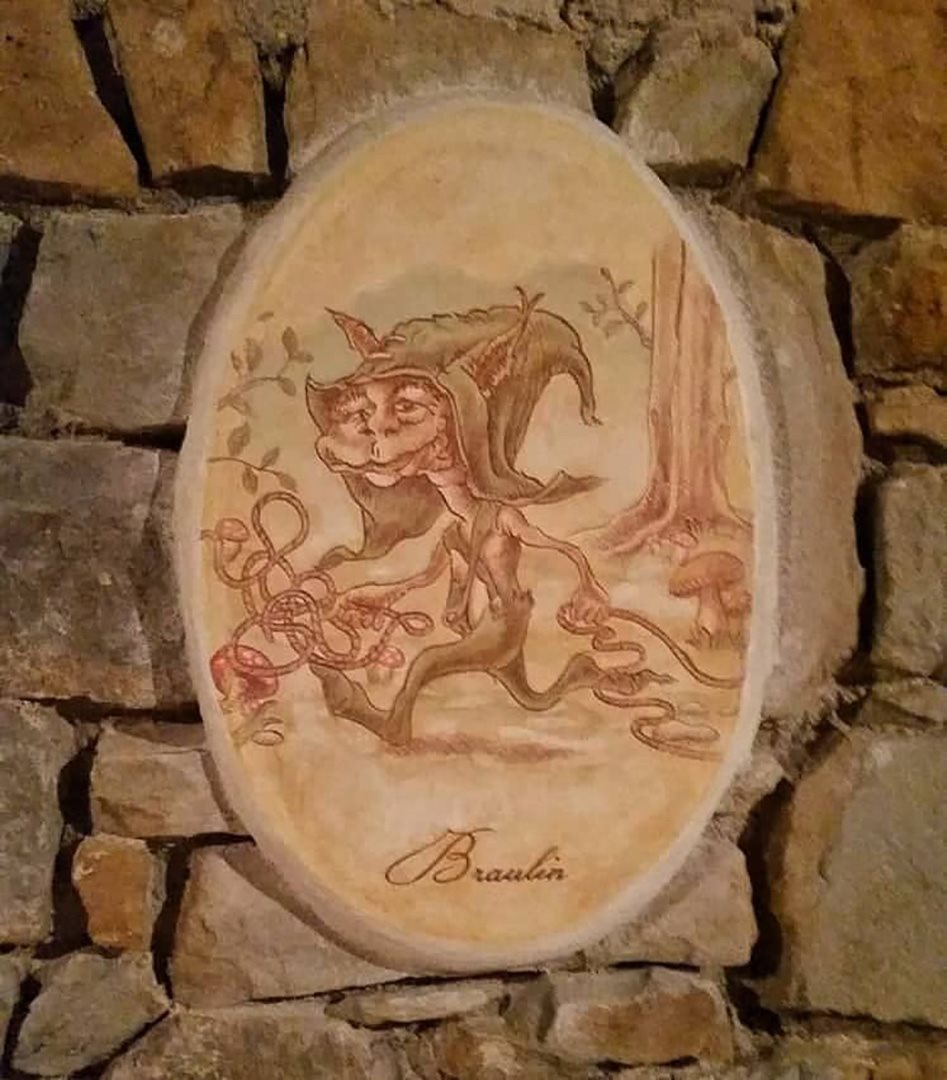 Qualche gradino ancora ed entriamo nella stanza della magia. Qui il vino è già nelle bottiglie, ben allineato o disteso a risposo, si presenta accattivante sulle mensole di legno. Ogni vino ha un nome, che potrebbe sembrare buffo, ma non ditelo forte, perché è il nome dei folletti e si sa che possono essere dispettosi! Ogni vino ha delle caratteristiche particolari così come il folletto che lo rappresenta. Ed è così che il Refosco dal Peduncolo Rosso diventa Pavar, folletto protettore della natura, dell’ecologia, vegetariano che si arrabbia con gli umani se non rispettano Madre Natura, un bel caratterino, insomma!