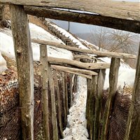Per raggiungere il monte Kolovrat si passa per ponte San Quirino, in direzione Grimacco-Drenchia e via su fino al passo Solarie. Io ho scelto un sabato mattina per arrivarci. Una giornata piuttosto umida, la neve ancora presente e poca gente intorno. Ho percorso qualche chilometro di trincee, in salita e in discesa, ma a un certo punto mi sono fermata. Questo territorio porta a riflettere, ed è quello che ho voluto fare con questo racconto: i confini non esistono.
