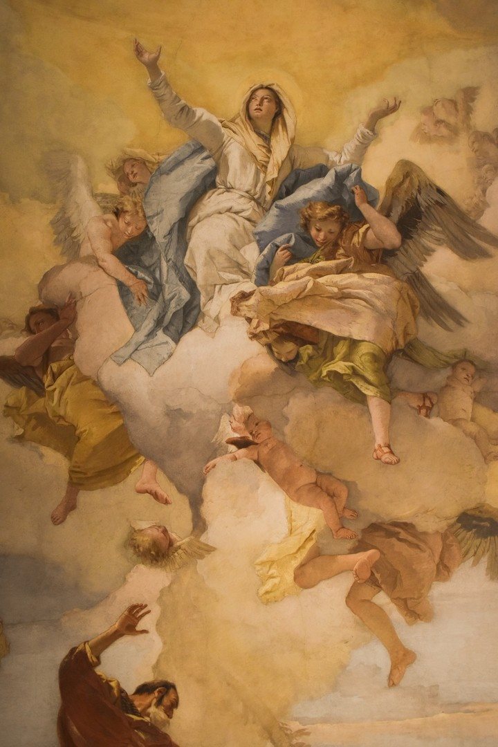 Tra le sue ultime opere, gli affreschi nell'Oratorio della purità: sul soffitto un Tiepolo sessantenne ritrae l'Assunzione della Vergine, mentre ai lati la mano disegnativa del figlio Giandomenico propone, in otto monocromi, episodi del vecchio e nuovo testamento, donando l'illusione di un bassorilievo grazie all'utilizzo della foglia d'oro applicata alla parete dipinta di grigio.