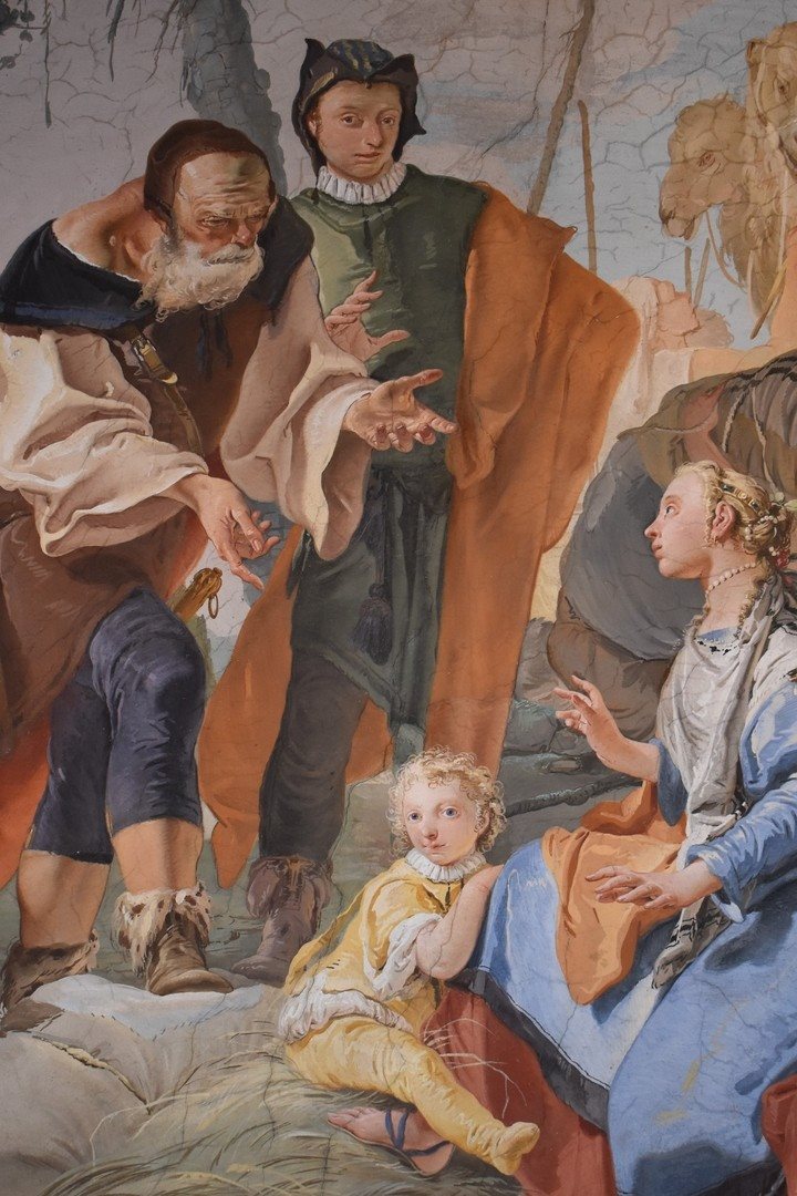 In Sara visitata dall’angelo sembra percettibile la morbidezza delle piume delle ali; ne Il sacrificio di Isacco, il giovane ci insegue con occhi imploranti durante il tragitto; mentre nell'affresco centrale due figure ci fissano: il Tiepolo rende dunque l'osservatore protagonista stesso della scena, in quanto richiamato continuamente dalle figure da lui dipinte.