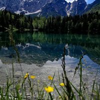 Dopo pochi minuti, davanti a voi, comparirà il Lago Inferiore, con le vette dei monti del Mangart riflesse nelle sue acque cristalline.