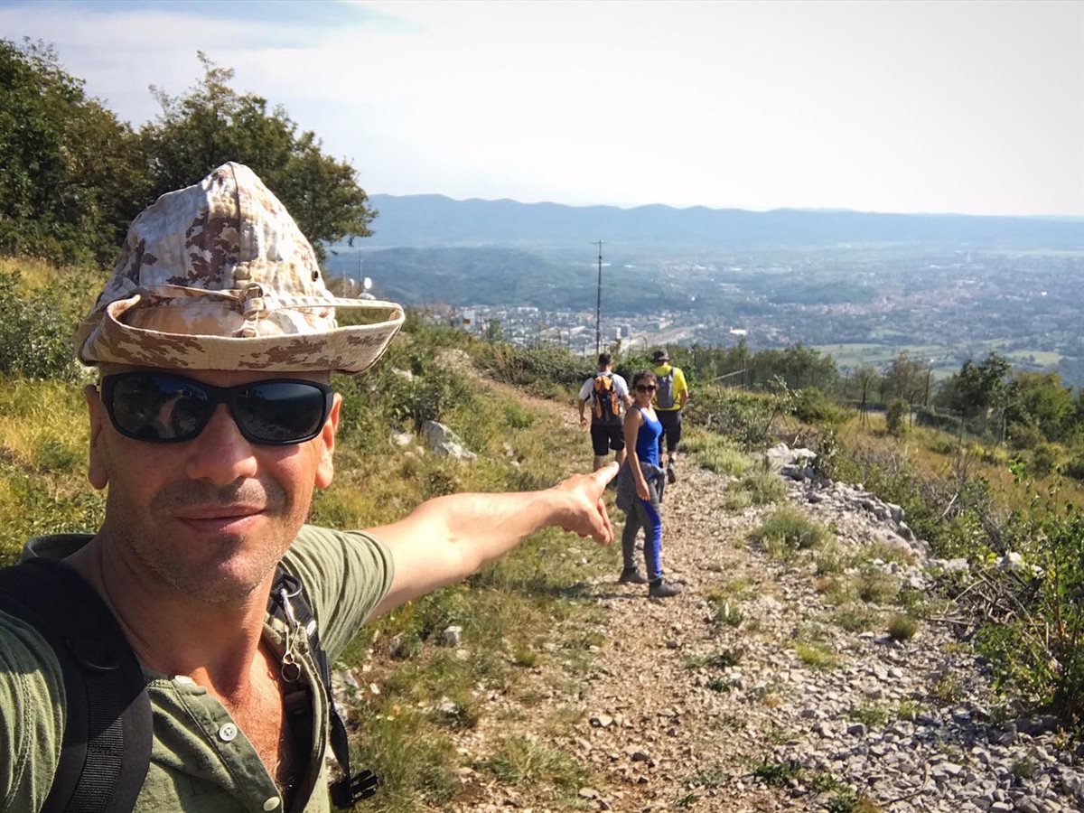 È da tempo che osservo da lontano il Monte Sabotino, che di giorno domina la piana di Gorizia e di notte quell’affascinante fascio di luci tricolore attira lo sguardo dei cittadini. Oggi è domenica, così io e la mia fidanzata decidiamo finalmente di fare un’escursione. Parcheggiata l’auto, notiamo due uomini in tenuta da trekking e, senza perdere tempo, gli chiedo alcune informazioni su come raggiungere i posti più panoramici del Monte Sabotino. Marco ed Alex, i nostri nuovi compagni di viaggio, ci propongono di seguirli e così, grazie a questa piacevole proposta, scopriamo il territorio con chi oggi ha compiuto un’importante impresa personale, la 250ª escursione fatta in questi sentieri.  Il Sabotino è il monte più alto (609 m s.l.m.) della provincia di Gorizia. Esso viene ricordato come uno dei maggiori luoghi di martirio delle battaglie dell'Isonzo, durante la Prima Guerra Mondiale. Camminando attraverso i sentieri segnalati dal CAI, è suggestivo percorrere il tragitto sulla cresta che separa i due confini, dove ancora oggi è possibile ammirare le postazioni militari e le vedette, dove i militari degli opposti paesi sorvegliavano il confine. Emozionante giungere sui ruderi dell’eremo medievale di San Valentino (14° secolo), un’antica chiesetta e un piccolo monastero, meta di intensi pellegrinaggi fino al 1796. Attualmente la chiesetta è stata consacrata, nonostante i danni provocati dalla guerra, ed ogni anno un’associazione locale di San Mauro organizza una messa congiunta con la popolazione italiana e quella slovena. Passeggiare sul Sabotino non è soltanto godere del meraviglioso paesaggio naturalistico costeggiato dallo sfondo smeraldino del fiume Isonzo, ma è anche respirare note di storia, di dramma e riconciliazioni tra popoli fraterni.