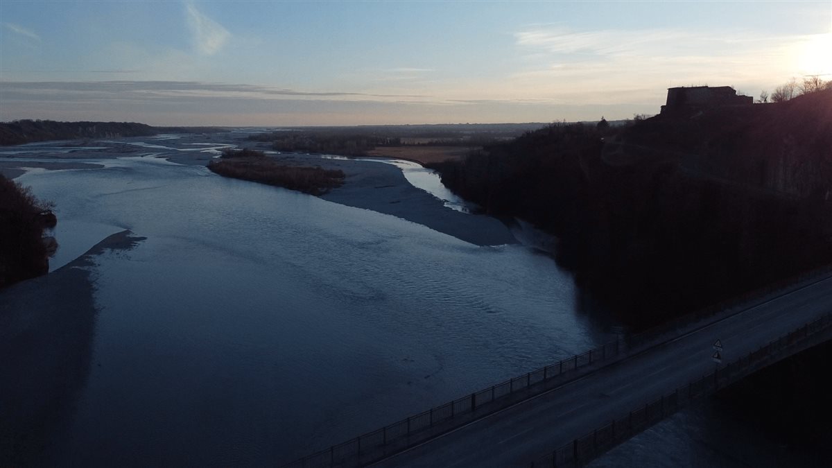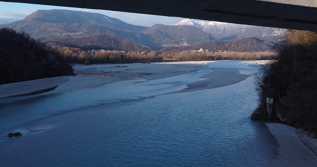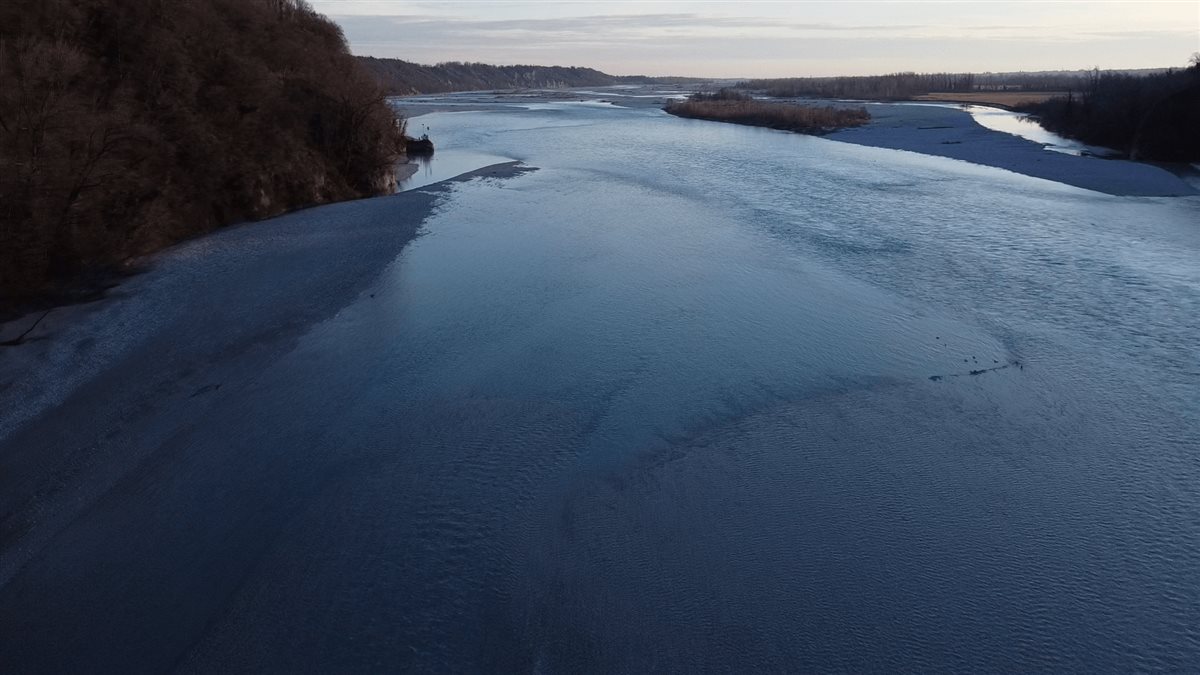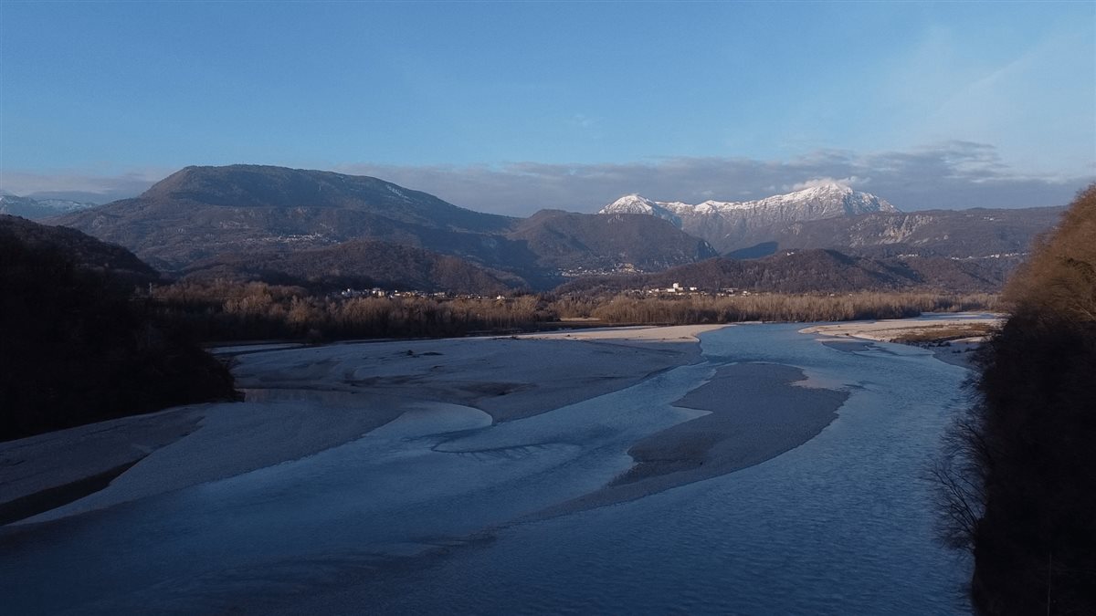 È in volo su uno degli ambienti più naturali del Friuli Venezia Giulia: il fiume Tagliamento.