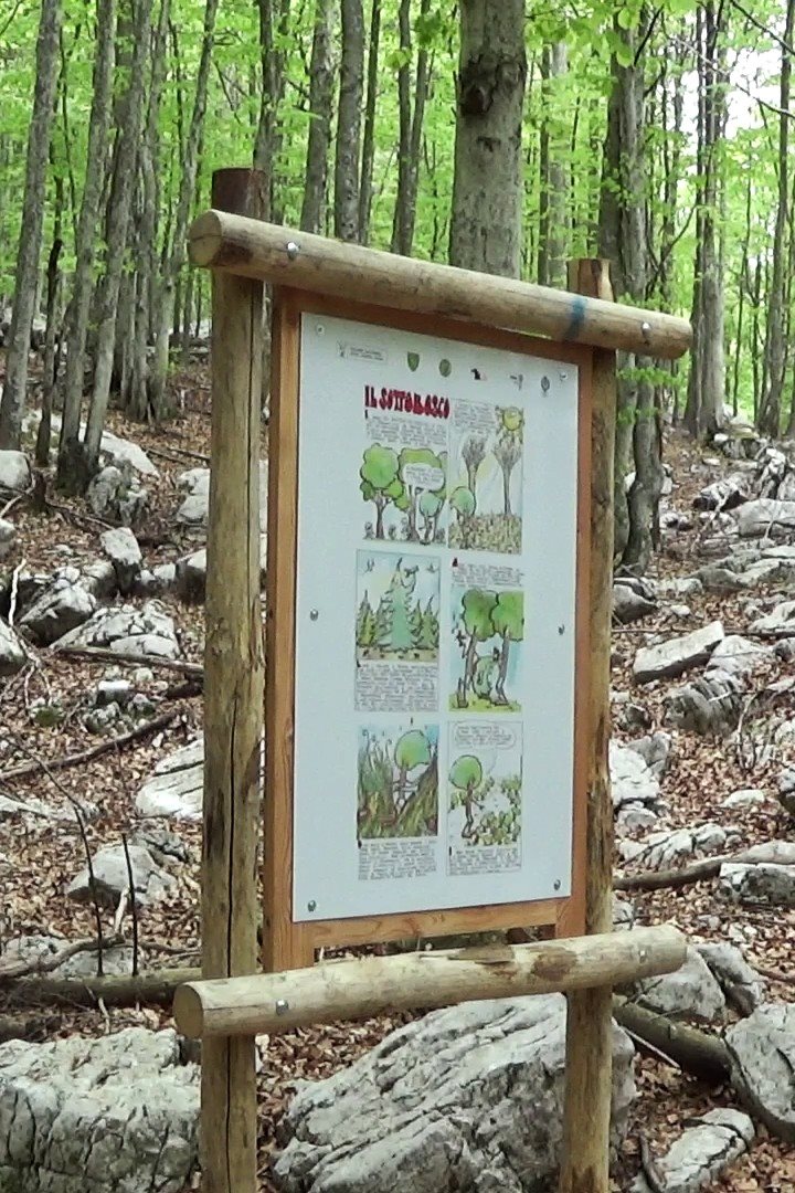 Il percorso è stato realizzato dal Corpo Forestale Regionale concatenando alcuni antichi sentieri e piste forestali. Di notevole interesse e molto divertente la cartellonistica didattica ed esplicativa messa in opera.