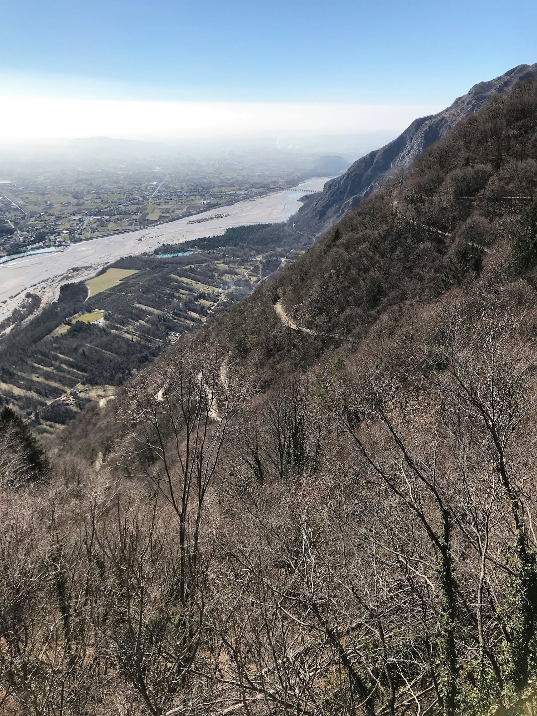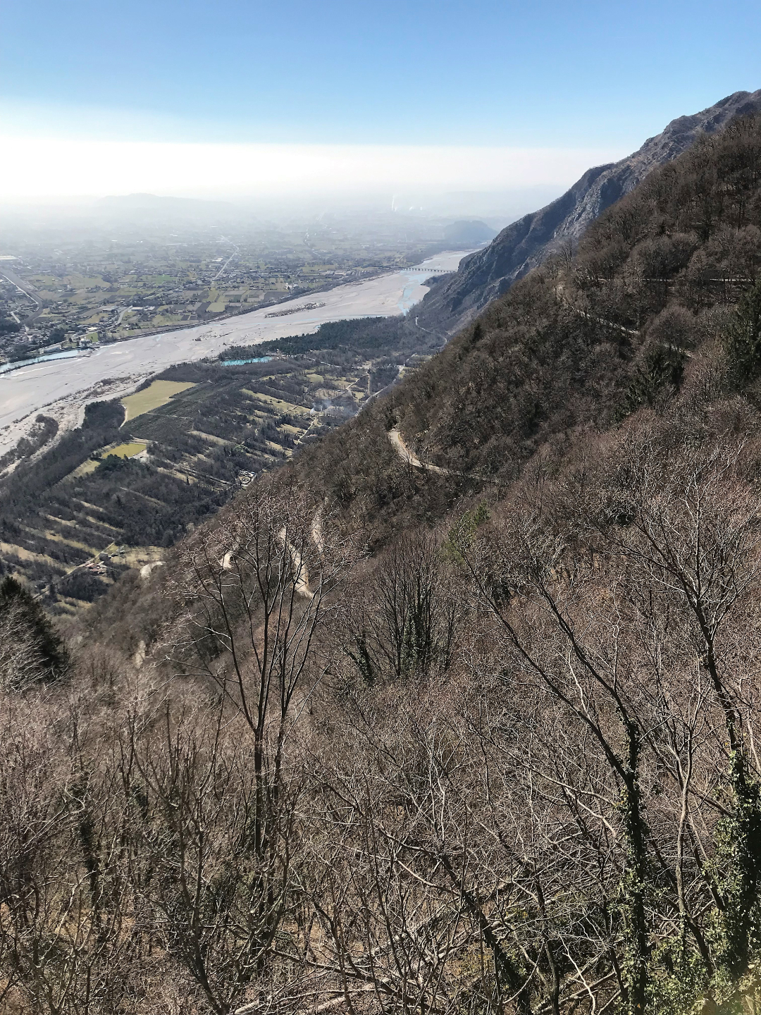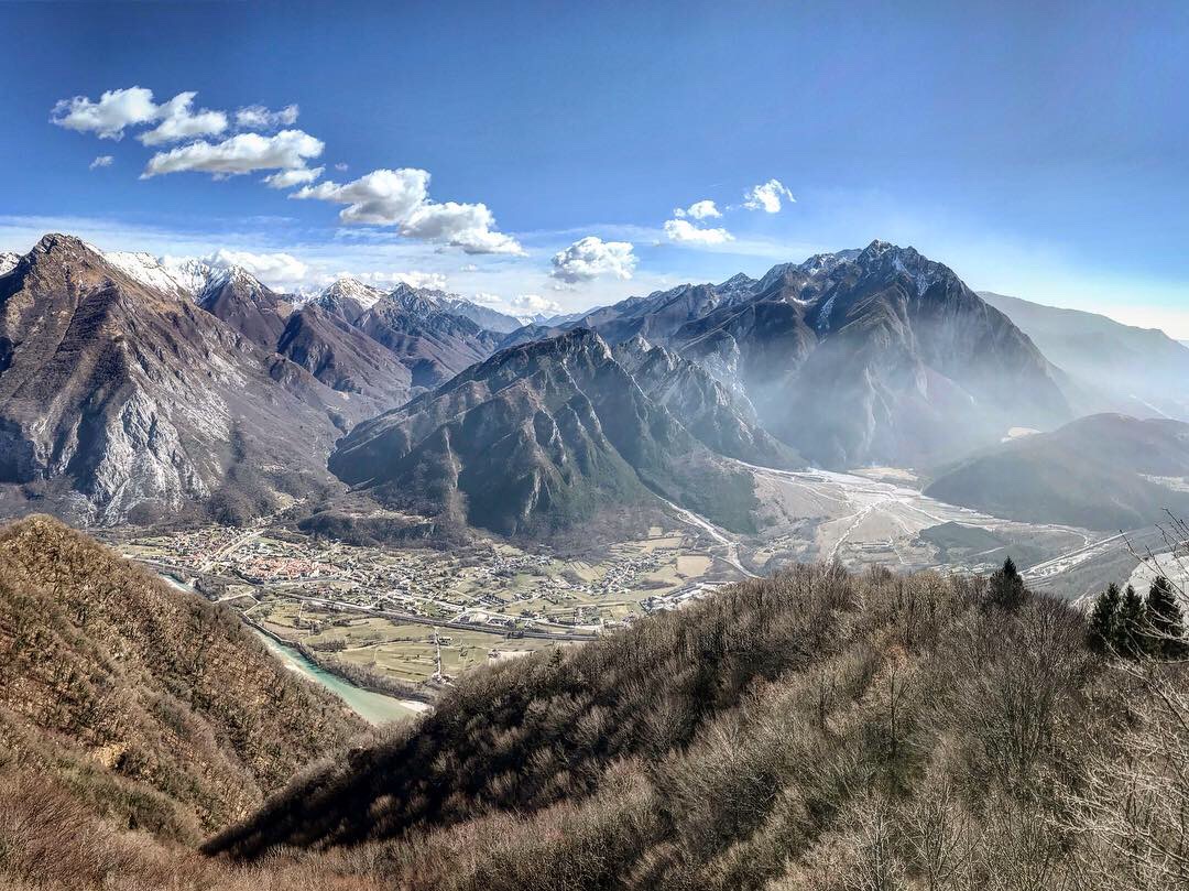 Salendo puoi vedere la valle della Venzonassa stretta e selvaggia dove persino gli orsi avrebbero difficoltà a viverci, Venzone con il suo dedalo di vicoli medioevali e in fondo la pianura che, dalle pendici del monte Cuarnan, si apre a ventaglio verso il mare.