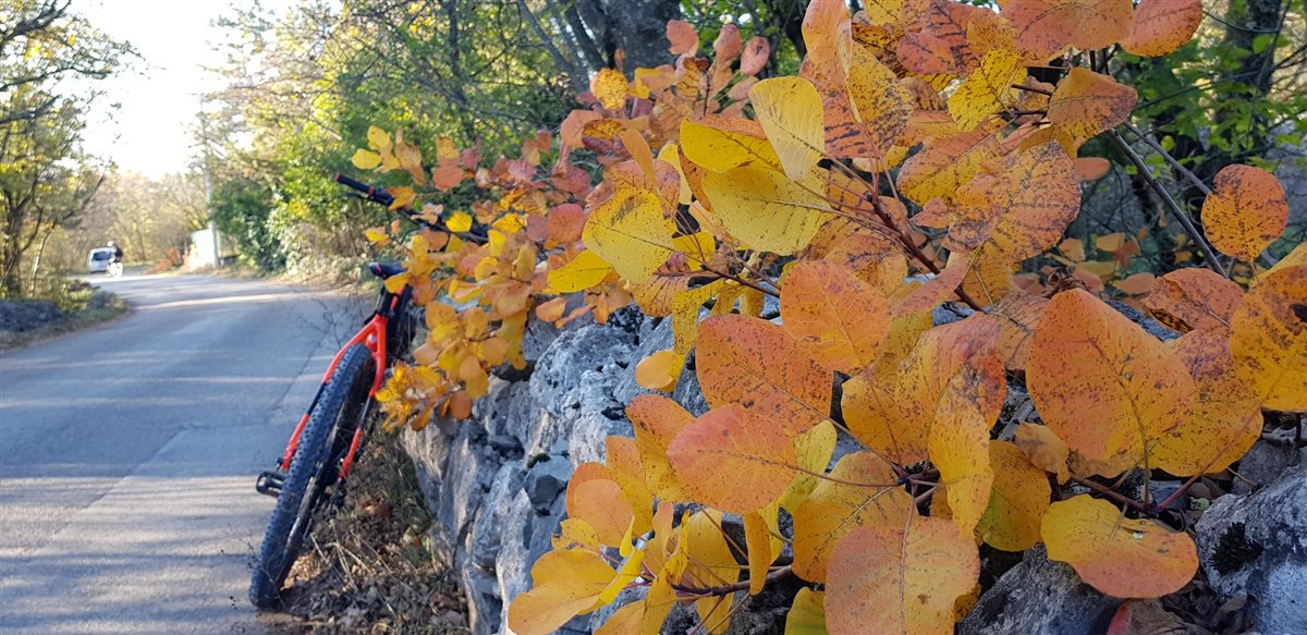 Mi trovo sul molo Audace. Trieste da qui sembra sdraiata sul Carso, e come un’elegante donna prende il sole mentre si gode il panorama del golfo. Mi allontano dal mare e inizio a guadagnare quota. La Ciclopedonale Cottur - disegnata su una vecchia ferrovia asburgica - mi porta dritto al cuore del Carso triestino, pedalando anche a pochissimi metri dalla linea del confine con la Slovenia. È sorprendente la rapidità con la quale si passa dal traffico del centro alla tranquillità di un paesaggio di montagna. A novembre, grazie ai suoi colori, il Carso regala il suo biglietto da visita migliore ai visitatori. Su tutti spicca il rosso del sommaco, che ricorda metaforicamente la tragedia della guerra. Grazie alla bici elettrica riesco ad assaggiare solo il miele delle salite, che mi portano a toccare, tra un’osmiza e l’altra, luoghi di interesse storico e naturalistico come le foibe di Basovizza, la Val Rosandra, la Grotta Gigante e il museo della Casa Carsica.