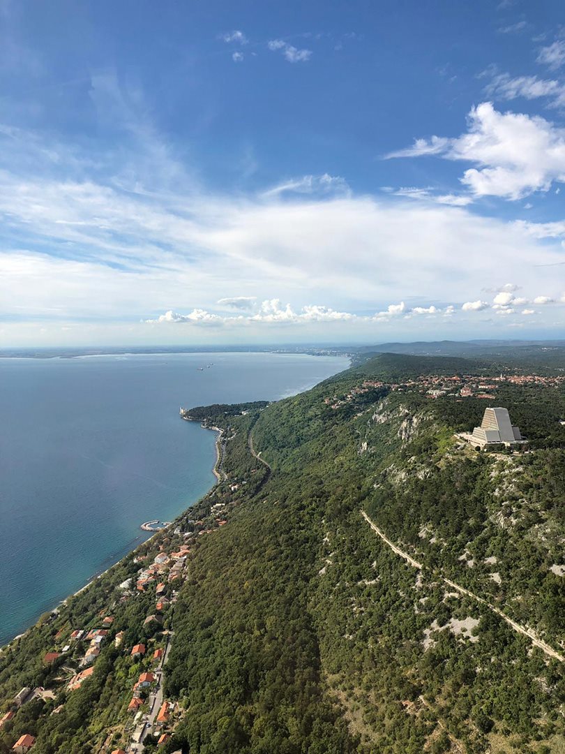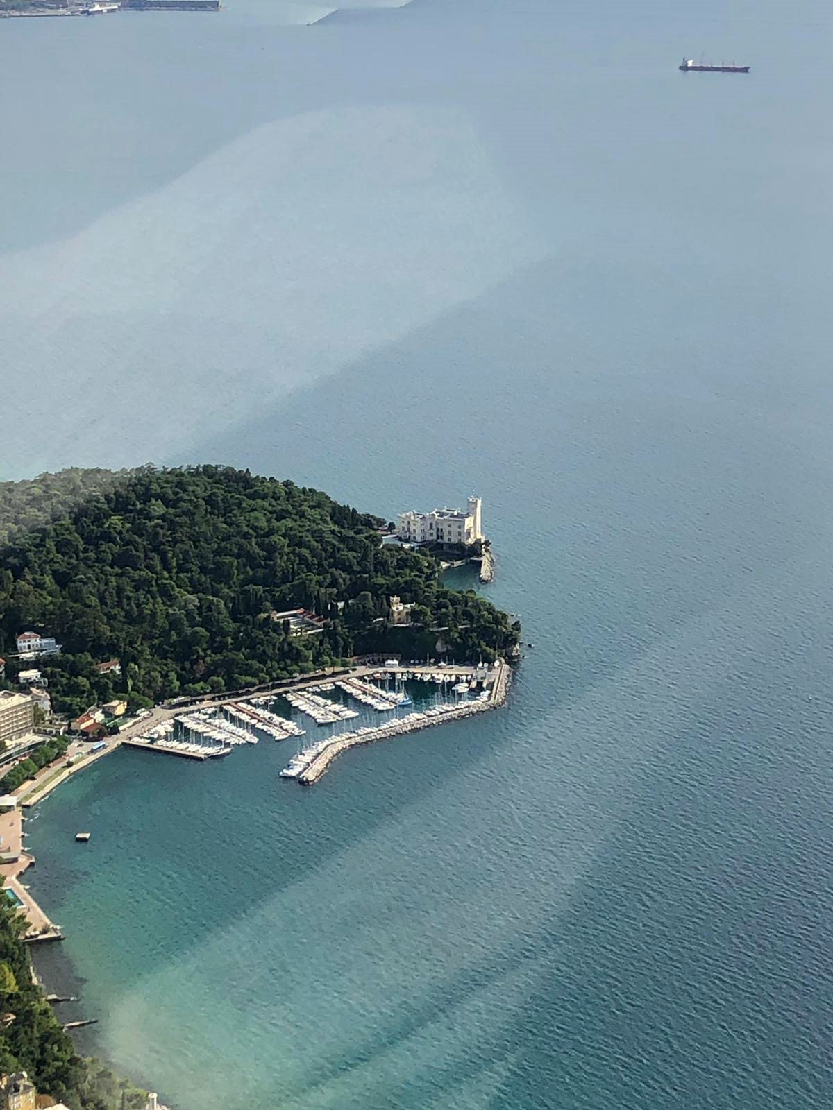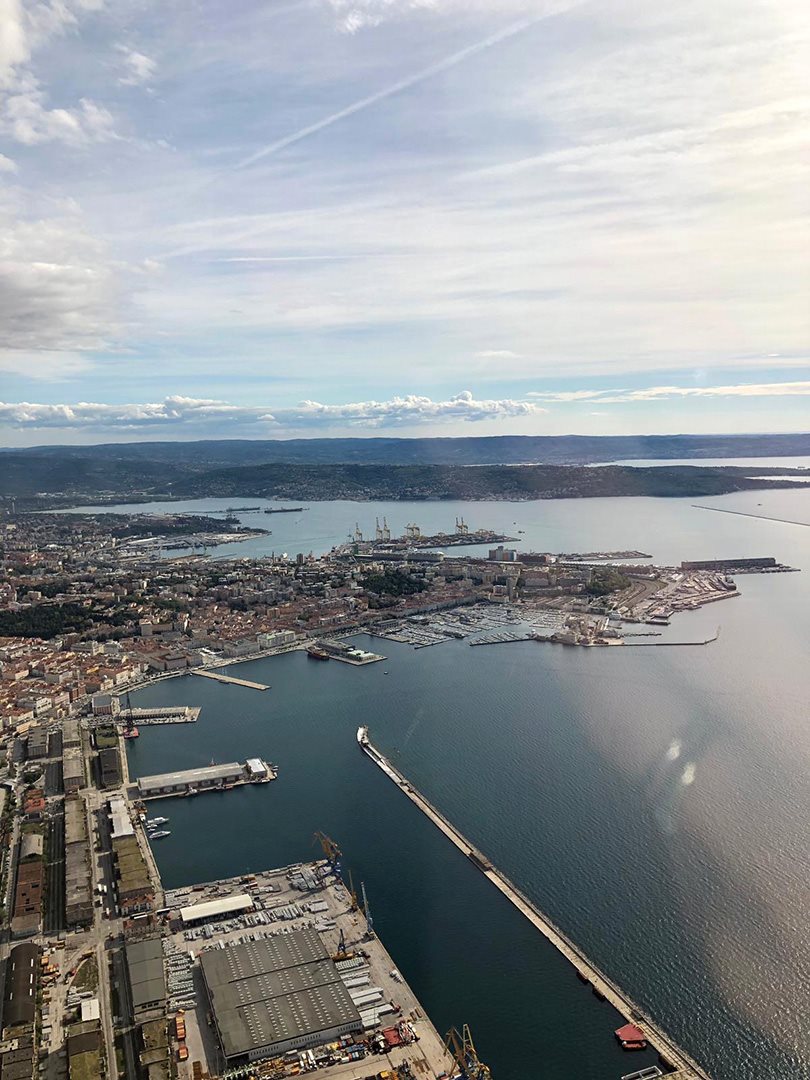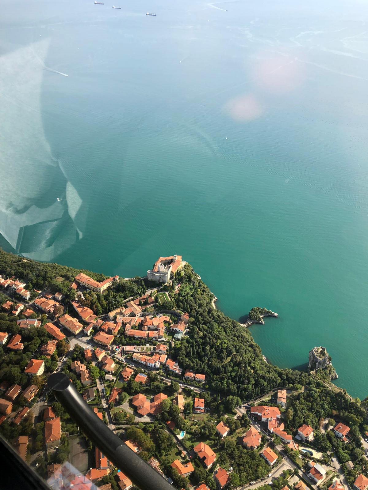 Nach dem Abflug vom Flughafen Ronchi dei Legionari geht es am Schloss Duino vorbei, wo wir die endgültige Höhe erreichen, um dann Kurs auf das Schloss Miramare und Triest zu nehmen. Für mich als Triester ist es ein schönes Gefühl, über meine Stadt fliegen und den Touristen unser Gebiet von oben zeigen zu können.