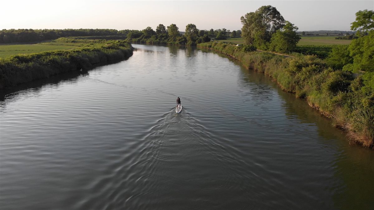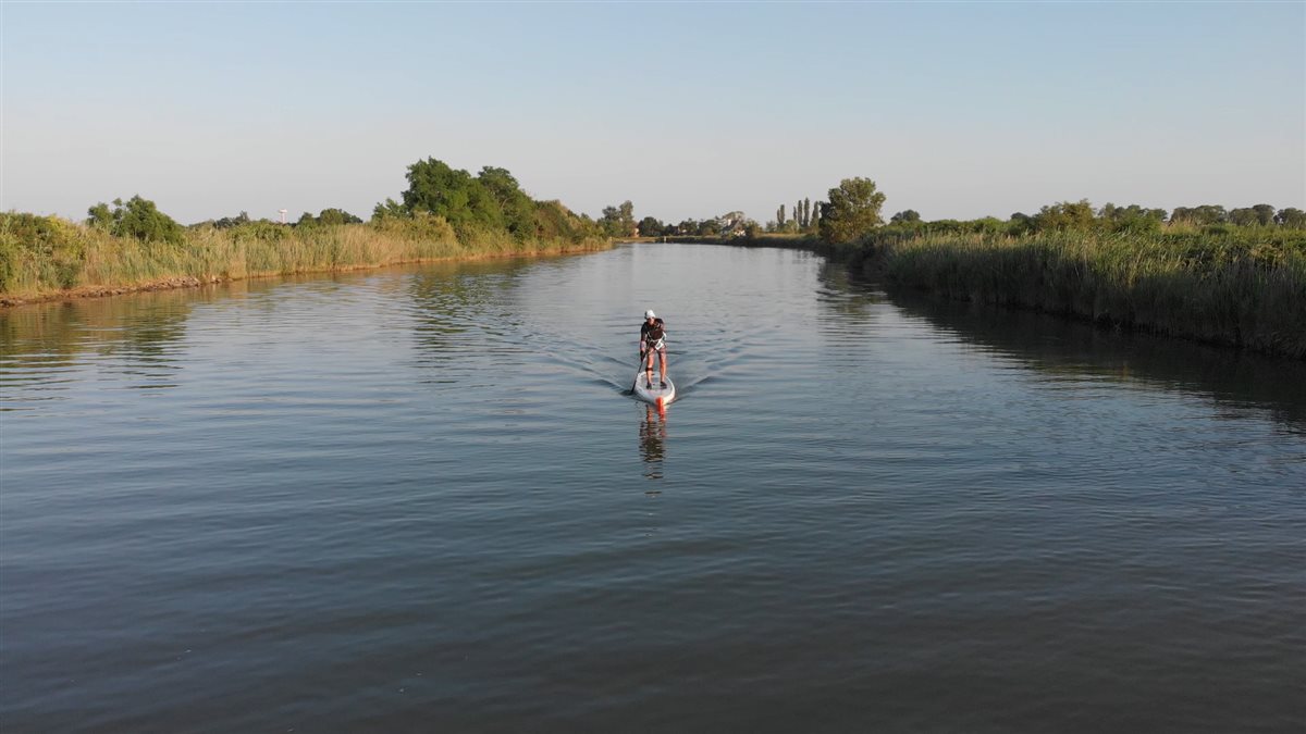 sicuramente, la riscoperta di questo percorso a livello naturalistico, con un mezzo ad impatto zero che mi ha anche permesso di mettermi alla prova fisicamente. Mi interessava soprattutto riscoprire il territorio con una mobilità lenta, percorrendo l’intreccio di canali il cui valore storico è innegabile: parliamo di sistemi di navigazione che venivano usati per scambi commerciali e spostamenti che hanno impattato fortemente sullo sviluppo di questi territori. Oggi sono diventati passaggi secondari, le cui direttive legislative non sono sempre chiare e pertanto il mantenimento e la manutenzione non sono molto curati, tuttavia continuano ad essere utilizzati da mezzi di spostamento, pescatori e anche da “barchisti” della domenica, spesso in modo improprio.