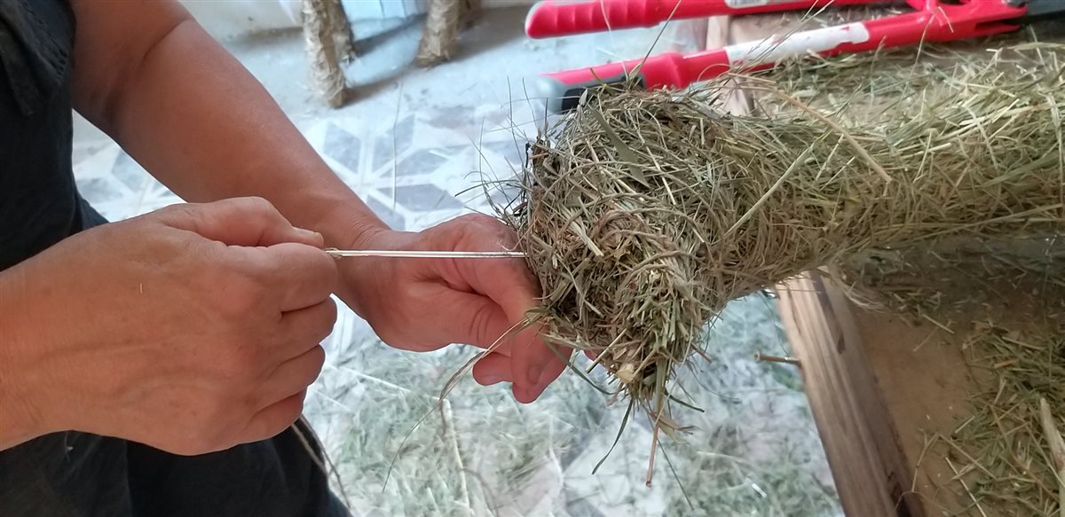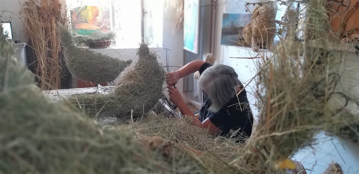E mentre ci viene letta una favola sulle oche e si intreccia la struttura base su cui dar vita al all'oca, le mani iniziano il viaggio che le porterà ad incantare il cuore con le forme del fieno.