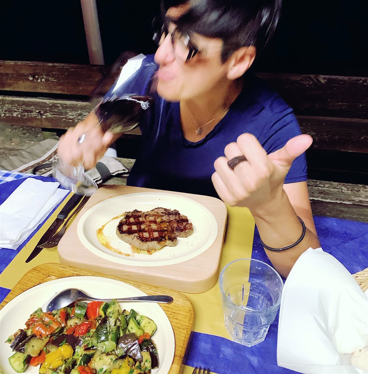 Quando è il momento di mangiare mi sento felice. Il buon cibo, un buon vino e il frinito delle cicale sono il giusto connubio per finire una giornata, che sia di lavoro o di vacanza (insieme a un freddo Pelinkovec*)