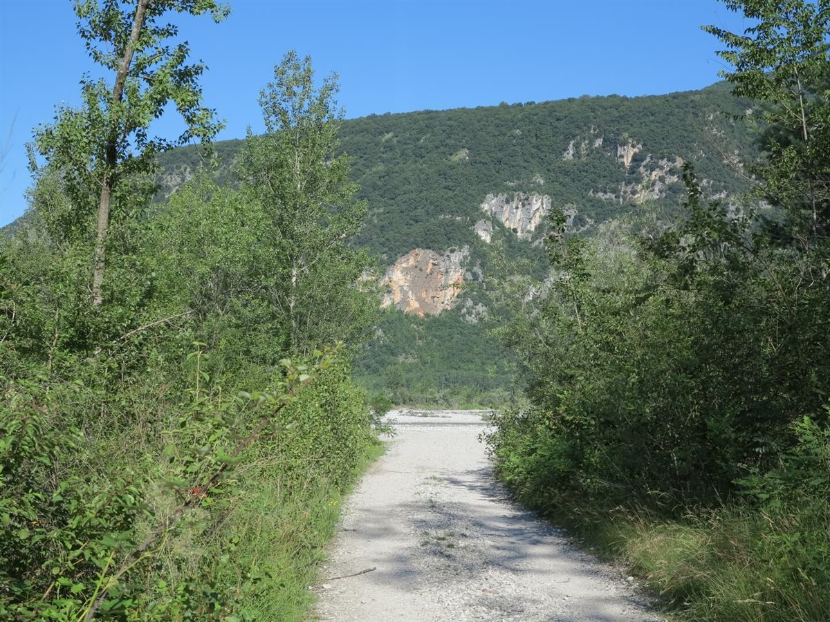 Il greto sabbioso che preferisco si trova a Osoppo nell’ambito delle Sorgive dei Bars. Ci si arriva in bicicletta partendo dal tracciato dell’Alpe Adria (FVG1) all’altezza dell’area di sosta nei pressi delle risorgive. Attraversato un tratto di vegetazione, si arriva ai prati stabili popolati da splendide orchidee e da grilli canterini per giungere poi, a ridosso del fiume Tagliamento, a una zona steppica punteggiata da cardi e salici selvatici. Poco a monte si raggiunge il greto, in un punto in cui il nastro azzurro dell’acqua arriva a lambire la sponda.