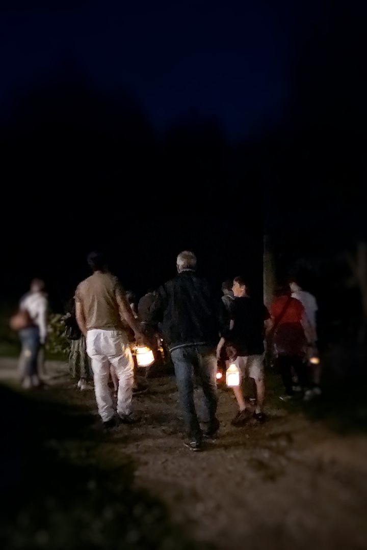 L’eccitazione dell'attesa è palpabile, si sente il vociare dei bambini che corrono in giro aspettando che il sole scenda e dopo aver acceso le lanterne, in fila indiana si segue il percorso delineato nella notte dalle candele.