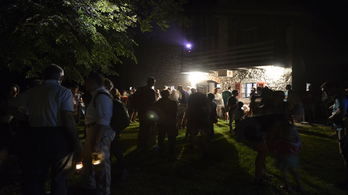 Il punto di ritrovo è presso la baita Al Pioniere dove, dopo essersi deliziati il palato con i piatti della tradizione friulana e carnica, si attende impazienti l’imbrunire.