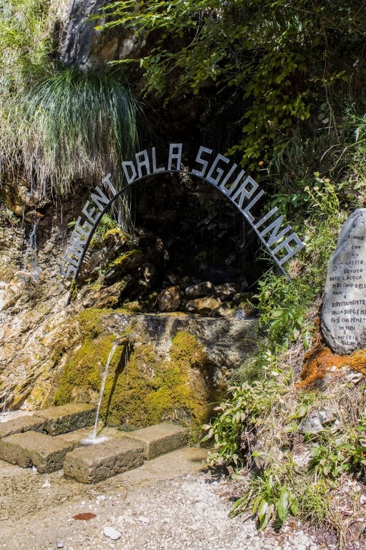 Lungo il percorso si passa dalla Sorgente dala Sgurlina, fonte di acqua cristallina, ideale per fare rifornimento d’acqua.