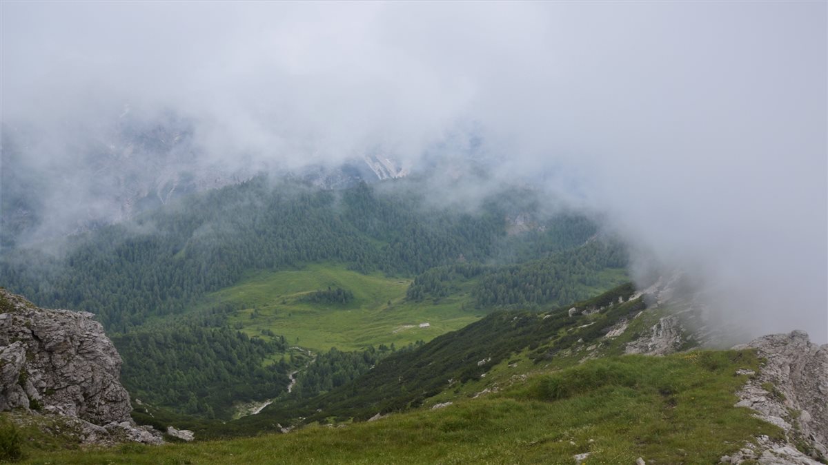 Ancora una volta in Dolomiti Friulane. Parto presto da casa, prima dell'alba perché al pomeriggio devo essere al lavoro, giù a Pordenone, ma in fondo, questo è il vantaggio di abitare in una regione che in pochi minuti di auto permette di andare dal mare alla montagna. Un vero "compendio dell'universo"! Parcheggio l'auto al Rifugio Pordenone in Val Cimoliana e subito mi incammino tra le spaventose ghiaie del Sciol de Mont per raggiungere casera Bregolina Grande dove incontro altri amici che hanno trascorso la notte in tenda. Decidiamo dunque di procedere verso la Cima del Monte Ferrara, poco conosciuta, ma certamente la più panoramica delle Dolomiti Friulane. Transitando per la particolare forcella Savalons (che in friulano significa "sabbia" data la sua conformazione) iniziamo la risalita alla cima quando un turbine di nubi bianche come spumiglie ci sorprende. E' subito poesia! In cima ci accoglie un tricolore sventolante issato il giorno precedente dagli amici Alberto, Dario e Lorenzo. Ogni tanto si aprono cigli di cielo celeste intenso che ci permette di stupirci dello splendido panorama dolomitico. Ora capisco perchè questi luoghi straordinari sono Patrimonio mondiale dell'Unesco! Il rientro non può non prevedere una sosta al Rifugio Pordenone, dove i gestori Marika e Ivan ci allietano con irresistibili piatti tipici...