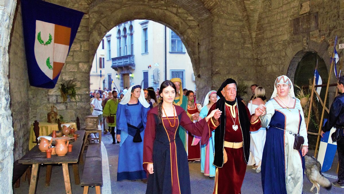 Alla città l'allestimento medioevale sta proprio bene ed è veramente bello passeggiare e poter assistere alle esibizioni dei musicisti, osservare le sfilate in costume, scegliere dei regali alle bancarelle dei mercanti dove sono esposte molte merci fatte a mano e godersi le gare del palio…. Ah, ovviamente anche mangiare alla locanda non è male! ;)