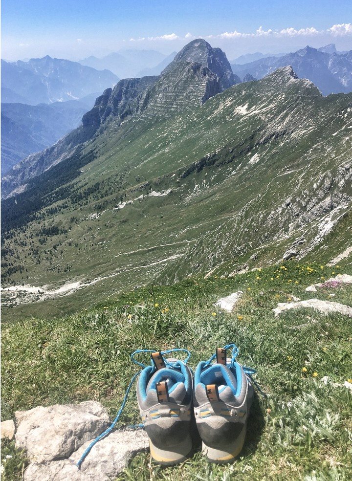 Si parte. La vista è fin da subito incantevole. Tutto attorno un tripudio di colori, sembra una tavolozza impressionista. Primule orecchia d’orso e Campanule di Zoys, delicate come pochi fiori, sono solo due esempi dei fiorellini di montagna che troverete lungo il percorso. Il primo tratto è meno ripido e vi sono dei lunghi tornanti che rendono la salita meno faticosa. Il sentiero è semplice ma da non sottovalutare. Vi sono dei punti più esposti e ghiaiosi, inoltre i simpatici e curiosi stambecchi che si incontrano, tendono a balzare indisturbati da una parte all’altra e a volte fanno rotolare i sassi giù per la montagna. Sono un po’ birichini. Fotografateli, ammirateli ma tenete sempre gli occhi aperti. Arrivata a metà del percorso, l’aria si fa più frizzante e respiro finalmente il profumo della conquista: sono a 4 km di distanza dalla vetta. Dopo una breve pausa, riprendo con la mia escursione, il panorama è mozzafiato, attenzione per chi soffre di vertigini, in quanto alcuni tratti possono destabilizzare.