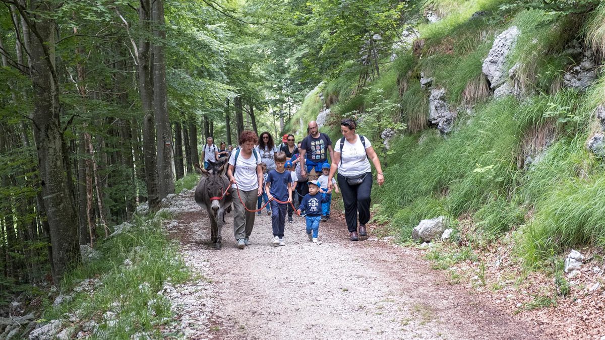 Poi conducono gli asinelli, insieme ai bambini, lungo il sentiero, che è quasi tutto pianeggiante, con diversi belvedere sulla pianura sottostante: lassù la vista è mozzafiato. L'esperienza che si vive è veramente molto interessante, soprattutto per chi ha bambini, ama gli animali e la vita all'aria aperta.