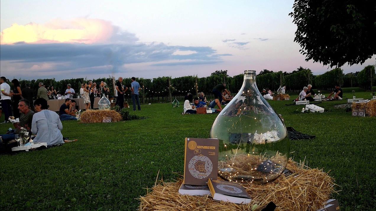 A fare da cornice la splendida arena naturale delle vigne, al centro il “morar” il gelso, l’albero simbolo del Friuli, attorno a esso le coperte da picnic apparecchiate con cura: un tavolino basso, i fiori e la candela accesa, nulla lasciato al caso.
