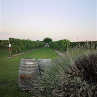 Immagina di entrare in una vigna sul far della sera. Le ombre che si allungano, il profumo di erba tagliata, i filari delle viti ben allineati ad accoglierti.