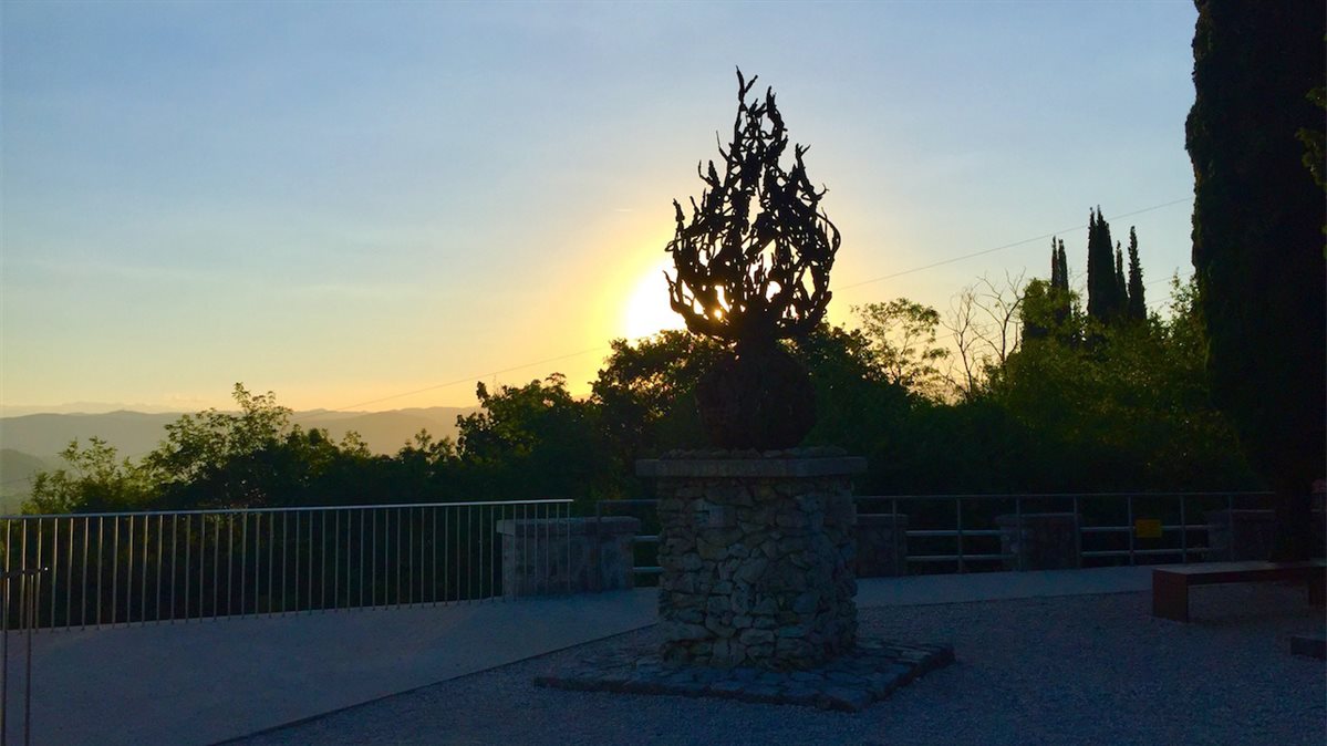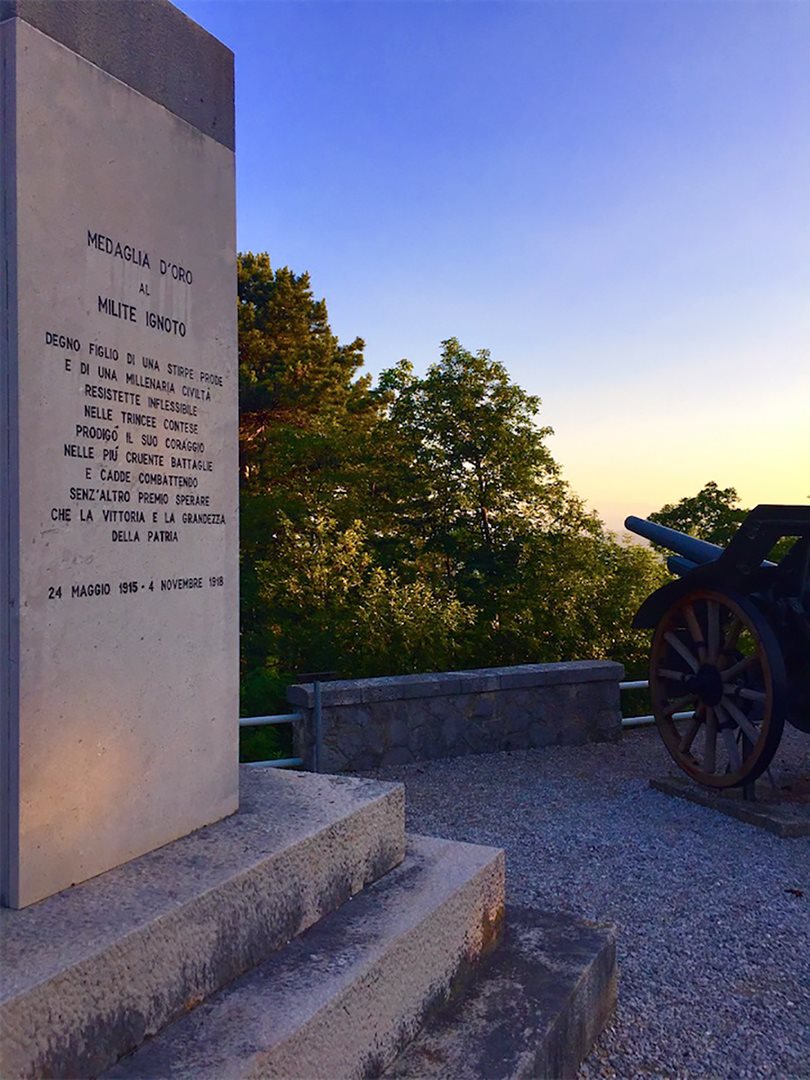 Mi trovo sul piazzale della zona monumentale del Monte del San Michele, luogo simbolo della Grande Guerra, davanti al Museo recentemente rinnovato con nuovi allestimenti multimediali. Sono una delle prime ad arrivare e mi godo l'immensa bellezza del panorama al sorgere del sole dalla terrazza che dà sull'isontino, mentre i ragazzi del coro Freevoices, chiamato a dare il proprio contributo musicale, effettuano le ultime prove.