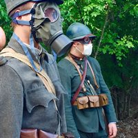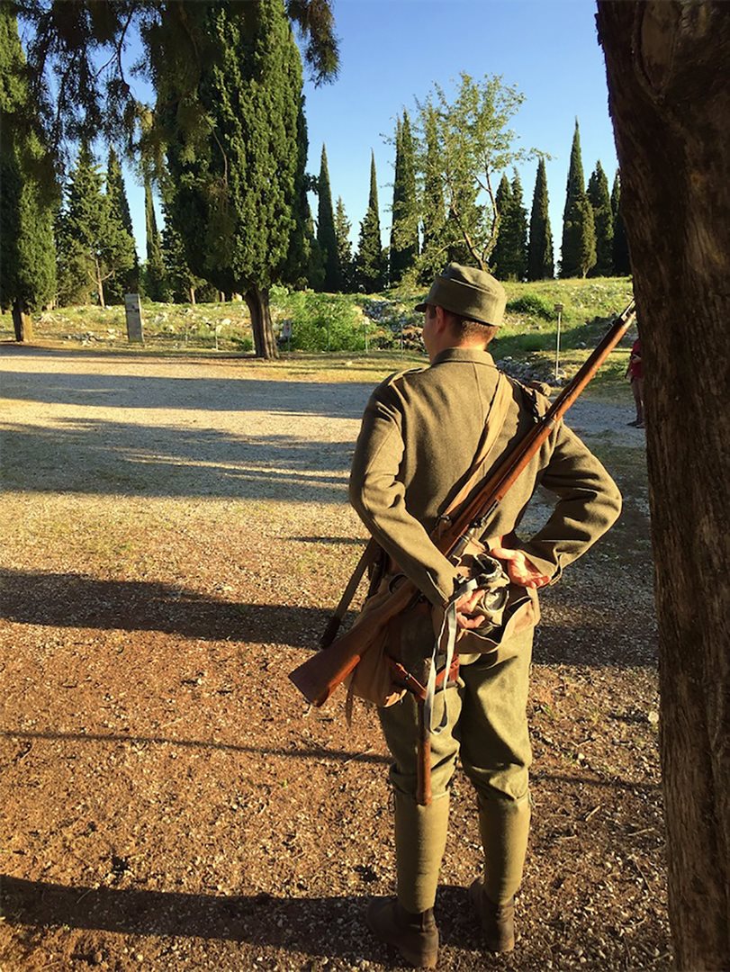 I rievocatori del Gruppo Storico Culturale I Grigioverdi del Carso ci aiutano a visualizzare l'aspetto dei soldati: le loro divise, le loro maschere antigas e la loro attrezzatura mentre la voce narrante ci guida attraverso i diari dei soldati, le loro poesie e racconti.