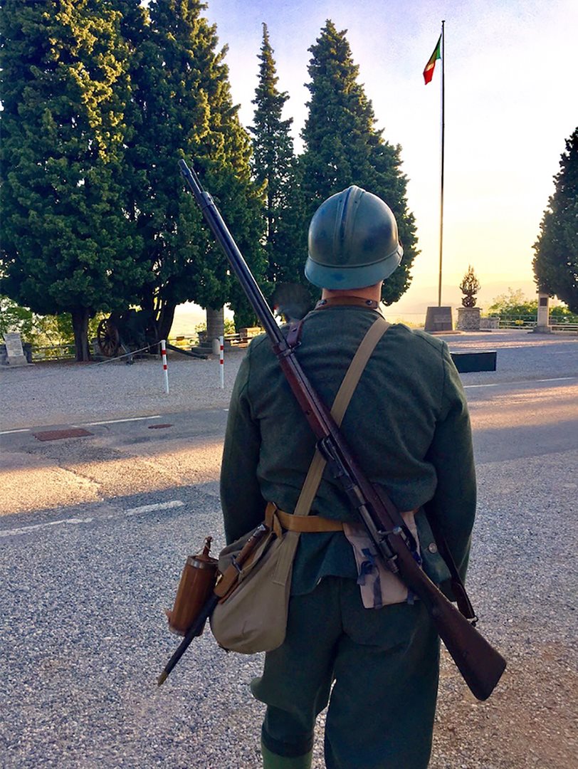 In circa due ore alternate da pause musicali, narrative e divulgative, passeggiamo tra i sentieri che si snodano dietro al Museo tra trincee, gallerie, monumenti e una meravigliosa terrazza dalla quale si riesce a vedere il mare.