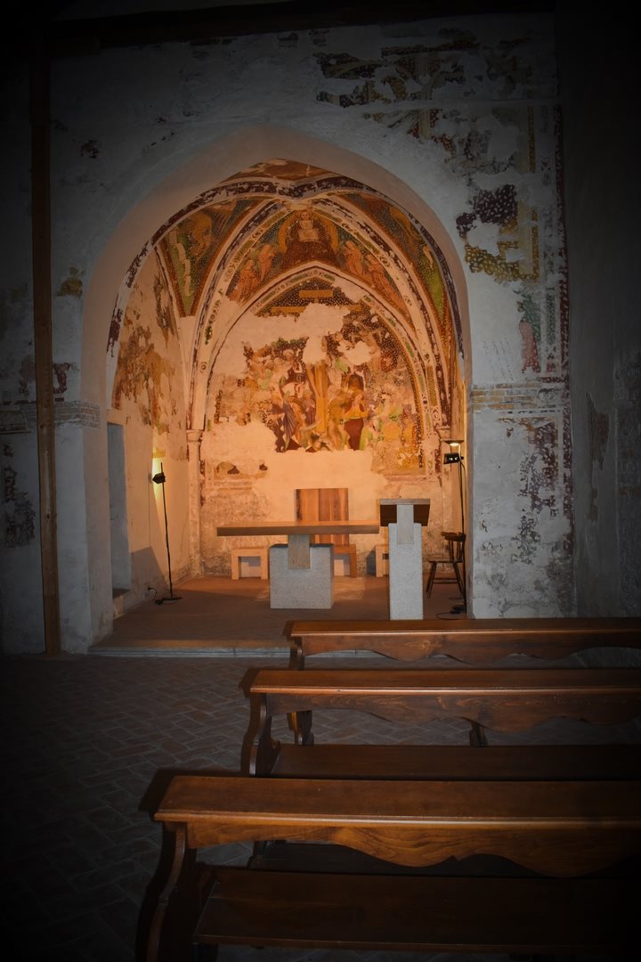 Uscendo da questo contesto signorile, si attraversa il borgo medievale che porta al Castello: al suo interno si possono ammirare tre splendidi piani di affreschi di diverse epoche che richiamano in alcuni casi le tecniche pittoriche del rinascimento; in altri invece i colori tenui delle pennellate sembrano rappresentare scenografie di vecchi teatri.