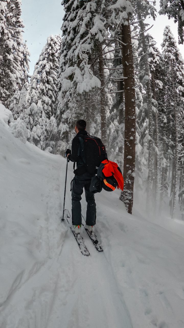 Un inverno così nevoso non si vedeva da molti anni, ma purtroppo gli impianti sono chiusi. Questo mi ha spinto a provare l'esperienza dello sci alpinismo nella suggestiva foresta di Pramosio. Noleggiata l'attrezzatura a Ravascletto mi sono diretto nel parcheggio del bar Pacai di Cleulis dove inizia la strada forestale che conduce a Malga Pramosio. Indossati gli scarponi, agganciate le pelli, si parte verso una salita in mezzo al bosco che lascia intravedere il monte Coglians attraverso le conifere. Dopo numerosi tornanti e 700 metri di dislivello, il bosco lascia spazio a una distesa innevata che fa da cornice a Malga Pramosio. Tempo per una breve pausa fotografica e dopo essermi goduto il panorama è ora di fare uno spuntino per poi togliere le pelli e iniziare la lunga discesa che porta al punto di partenza. Un'esperienza unica che consiglio di provare a chi ama la natura incontaminata e la fatica! Fondamentale sarà la scelta dell'abbigliamento che dovrà essere a strati e traspirante ma soprattutto valutare le condizioni metereologiche per potersi godere in sicurezza l'esperienza.