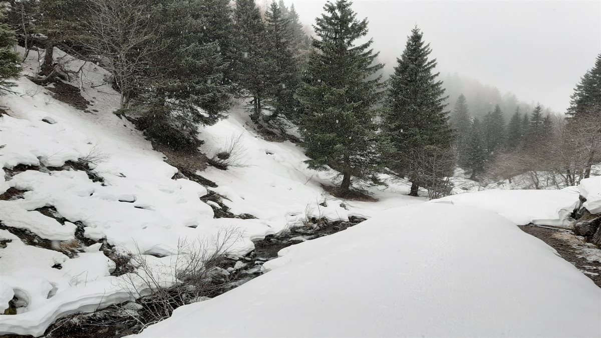 Sparute tracce di qualche animale interrompono la superficie soffice ed intatta che affianca il sentiero semicoperto su cui procedo: il chiacchiericcio delle ciaspole mi tiene compagnia fino all’ arrivo in prossimità di malga Plumbs, a cui non riesco ad avvicinarmi ulteriormente a causa della neve troppo alta. Con la schiena appoggiata su di un cumolo di neve guardo il cielo e raccolgo i pensieri, mentre sorseggio il caffè bollente della mia fedele borraccia, preparandomi al rientro.