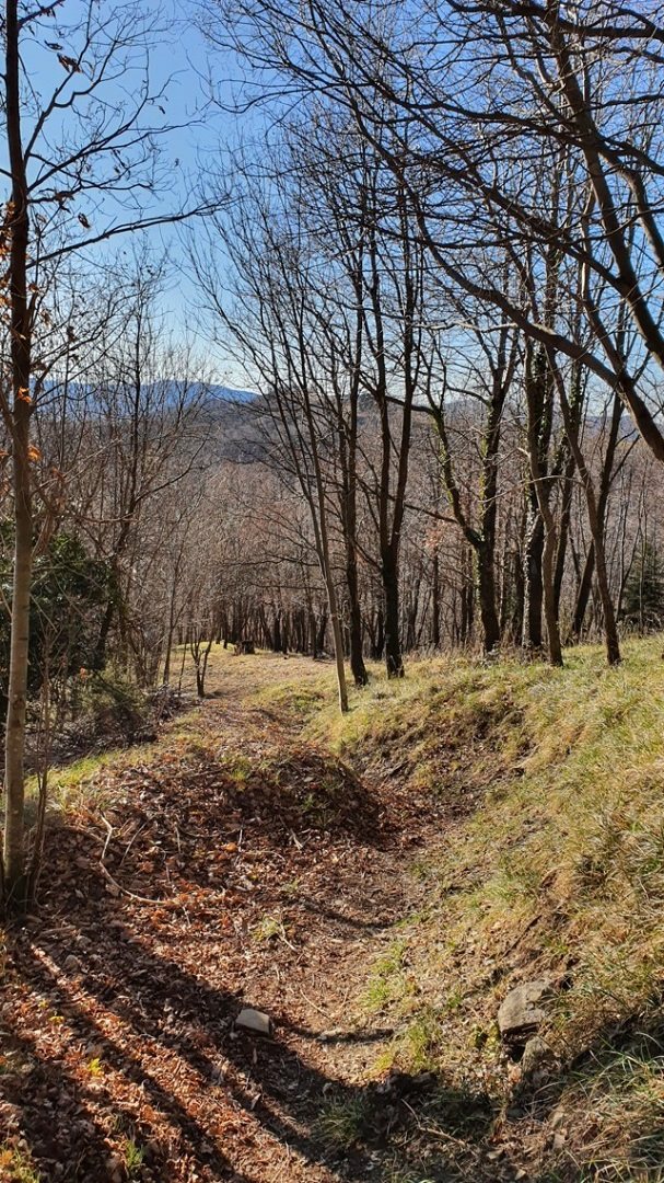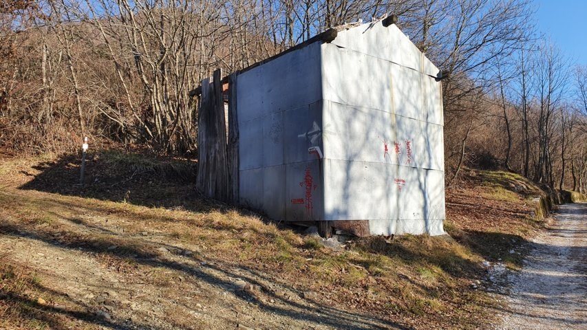 Imbocco il segnavia C.A.I. 747 (642 m.s.l.m.), che passa sotto al terrapieno dell’ impianto. Proseguo fino ad incontrare un fabbricato in lamiera. Qui giro a sinistra e comincio a salire. Il primo tratto è abbastanza dolce ma dopo pochi minuti la pendenza inizia ad aumentare.