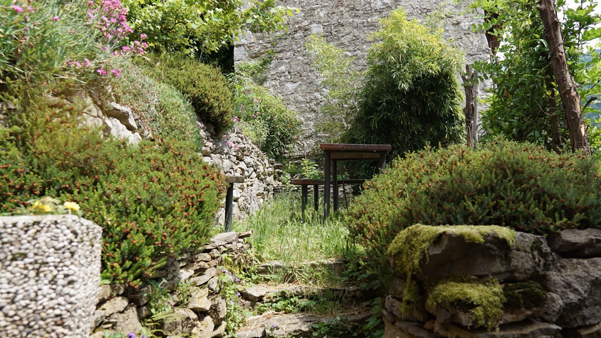 È un borgo la cui risonanza medioevale si sente da subito, dai collegamenti tra le case alle strette e pendenti vie coperte da sassi e erba.