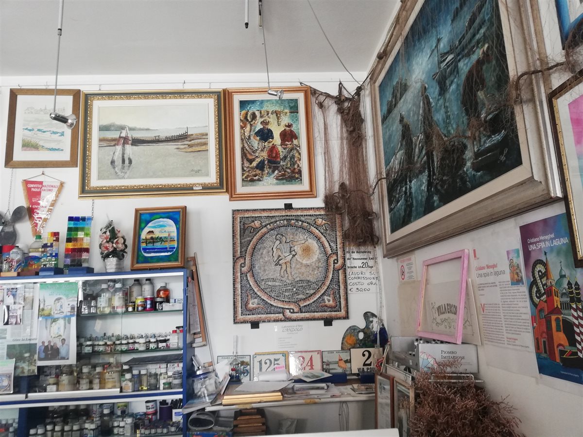La nostra passeggiata si conclude nella bottega d’arte l’Anzolo, aperta a Grado dal 1998, dove sommerso dalle sue stesse creazioni si scorge Johnny Cester, un personaggio pittoresco con tante storie da raccontare. Entrando nel locale si viene colpiti dal numero di oggetti in esposizione che riflettono la poliedricità artistica dell’artigiano: dai mosaici, ai quadri, alle lavorazioni della ceramiche e del vetro!