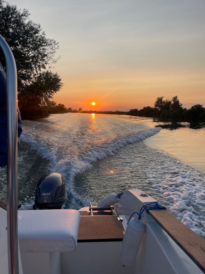 Durante una bella giornata di fine ferie, io e il mio ragazzo decidiamo di fare una bella gita in barca assieme al mio papà. Abbiamo controllato l’andatura delle maree e abbiamo visto che, per trovare l’alta marea, sarebbe stato l’ideale partire all’ora del tramonto. Che BELLO, uno dei miei momenti preferiti!