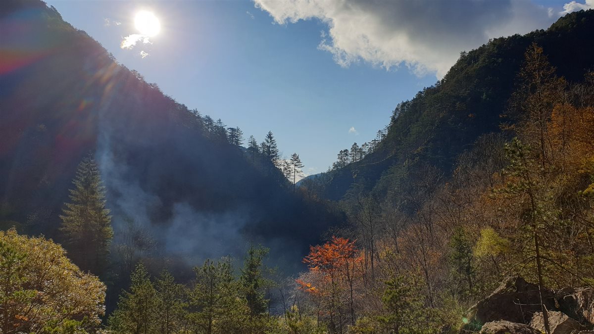 Avevamo scorte d’acqua per un solo giorno, ci siamo riforniti direttamente nel fiume Arzino, in località Piedigiâf. Qui ci siamo accampati per la notte. Il ponte in pietra è crollato. Il sentiero verso Tramonti di Mezzo, dopo un’ora di cammino da lì si perde nella boscaglia, quindi, attualmente risulta quasi impossibile giungere in Val Tramontina.