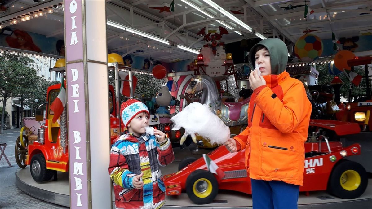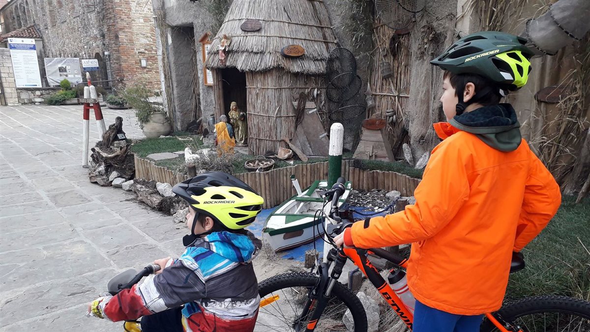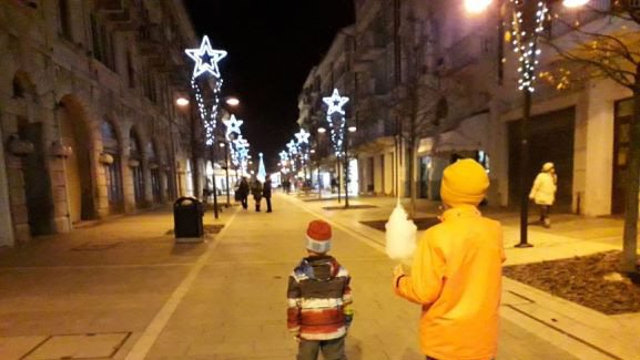Sempre in bicicletta abbiamo raggiunto il municipio in piazza Biagio Marin dove abbiamo ammirato gli alberi di Natale fatti dai bambini delle scuole del paese e dalle associazioni. Non poteva mancare lo zucchero filato preso alle giostre e un giro sugli autoscontri per i fratelli più grandi.