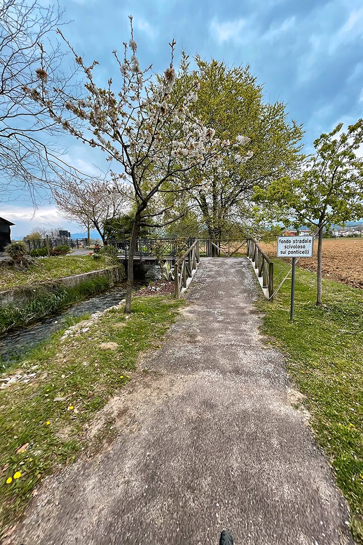 Immaginatevi una stradina asfaltata e bianca che attraversa borghi e campi, costeggia la roggia e incrocia mulini, chiesette, ponticelli… uno spettacolo alle porte di Udine!
