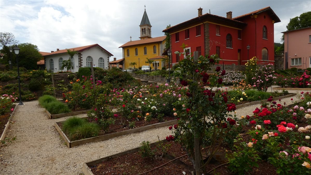 Da qui si snoda un sentiero facile da percorrere, tra prati, aiuole e... tante rose! Si inizia con le rose moderne per scendere nella parte più bassa dove sono ospitate le collezioni di rose antiche come quelle appartenenti alle classi “Chinensis” “Tea”, “Rugosa” e “Canina”. Lungo la rete perimetrale sono invece collocate rose rampicanti di varie classi; continuando verso via Bottacin troviamo invece una collezione di rose risalenti al periodo Liberty-Art nouveau (1888-1925).