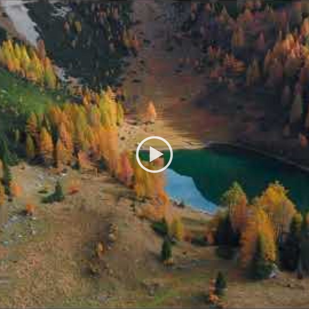 Superata la fontanella, in una decina di minuti si scollina e si raggiunge lo spiazzo della casera Bordaglia di sopra, da dove si può prendere il sentiero che scende nella conca fino al lago. La vasta presenza di larici, in contrasto con i sempreverdi, crea un ambiente variopinto che regala una vista mozzafiato.