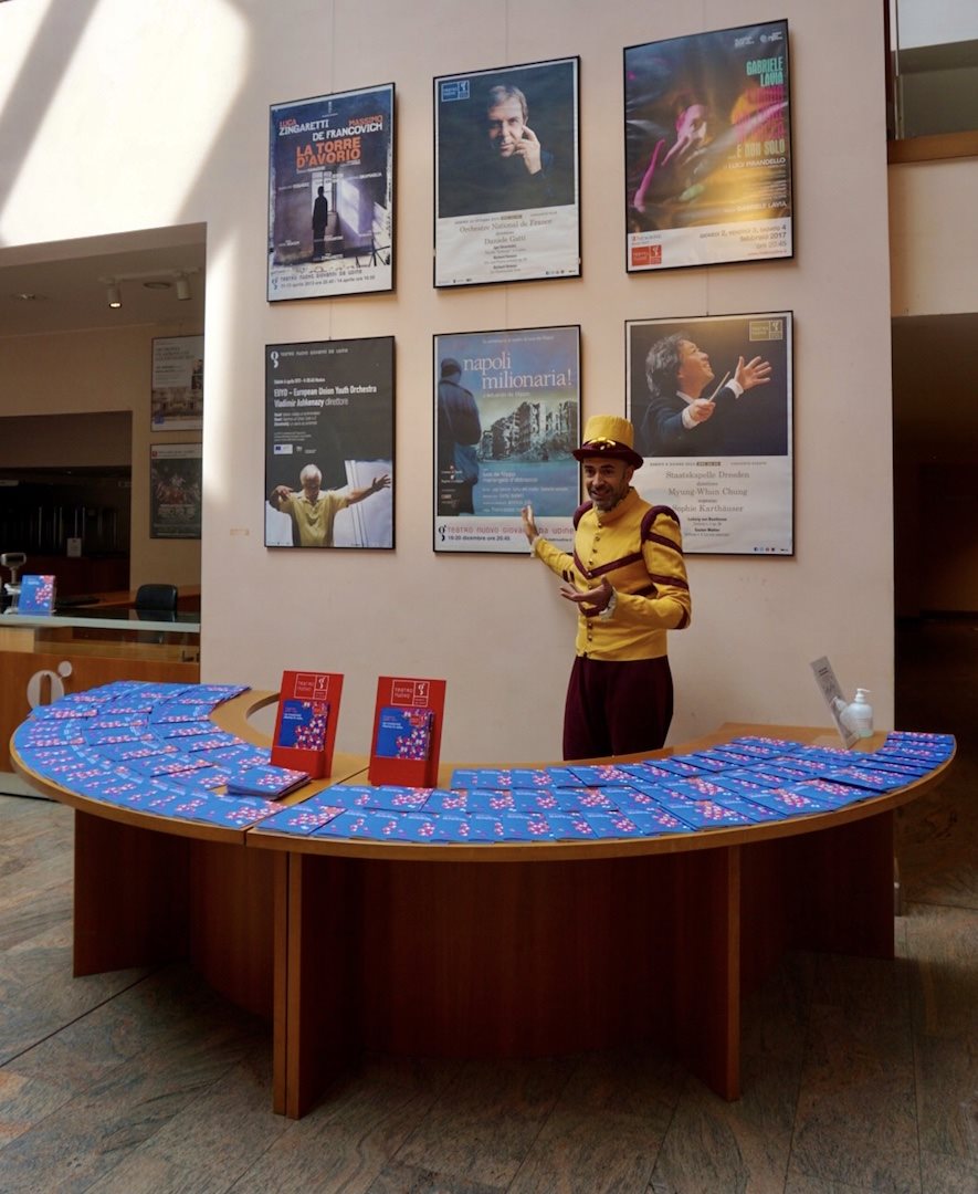 Nel foyer attende il padrone di casa, Giovanni da Udine, che introduce in questo mondo da una diversa prospettiva, avvalendosi di aneddoti legati al linguaggio: locandina, botteghino, balcone, platea, galleria, ballatoio, gelatine, quinte, graticcia... per ogni termine c’è una storia accattivante.