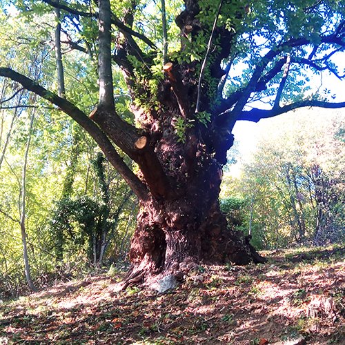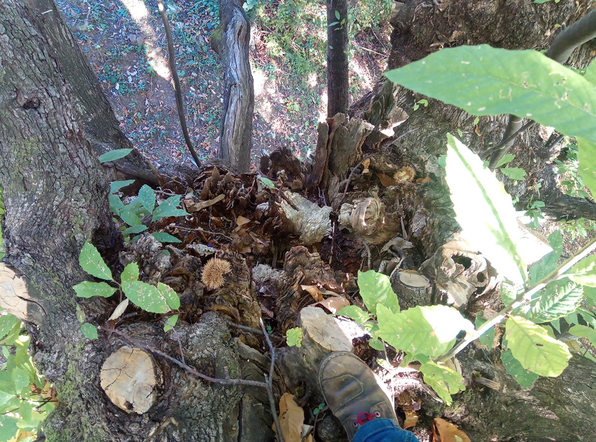 I climbed up it. Up to the knots that had grown over the years on its old trunk, up to where a storm had split it dozens of years ago. The foliage had grown back dense, producing new chestnuts, but the trunk had begun a slow process of decay. But that is almost normal for a chestnut tree more than four centuries old with a trunk at least nine metres in circumference.